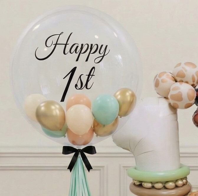 - 24″ personalised bubble (helium) with tassel tail